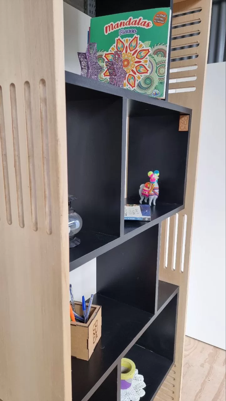 Nuestra biblioteca tiene un diseño moderno y elegante,se adapta a cualquier estilo de decoración por sus líneas rectas y calados. Es ideal para el living,dormitorio o estudio. Permite aprovechar al máximo el espacio vertical,sin ocupar demasiado lugar en tu ambiente. También puede ser utilizado como divisor de ambientes porque no posee fondo. Los 5 estantes de melamina ofrecen una gran cantidad de almacenamiento y resistencia al desgaste, es de fácil limpieza.