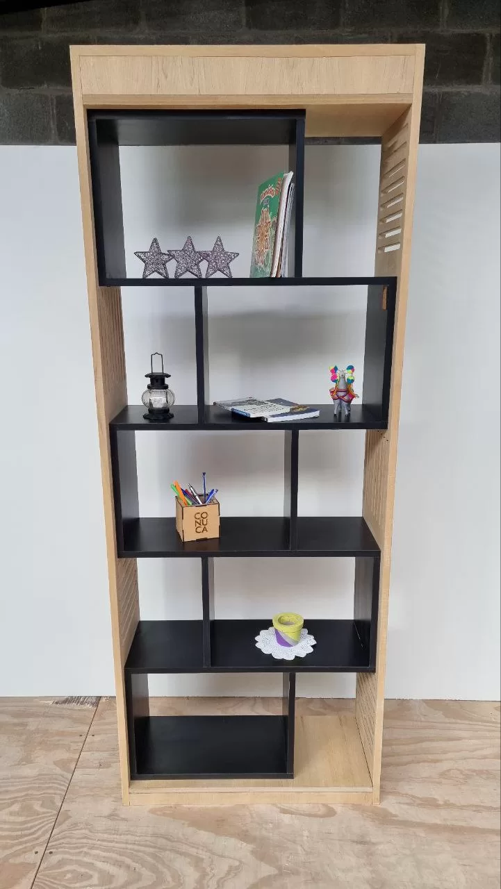 Nuestra biblioteca tiene un diseño moderno y elegante,se adapta a cualquier estilo de decoración por sus líneas rectas y calados. Es ideal para el living,dormitorio o estudio. Permite aprovechar al máximo el espacio vertical,sin ocupar demasiado lugar en tu ambiente. También puede ser utilizado como divisor de ambientes porque no posee fondo. Los 5 estantes de melamina ofrecen una gran cantidad de almacenamiento y resistencia al desgaste, es de fácil limpieza.
